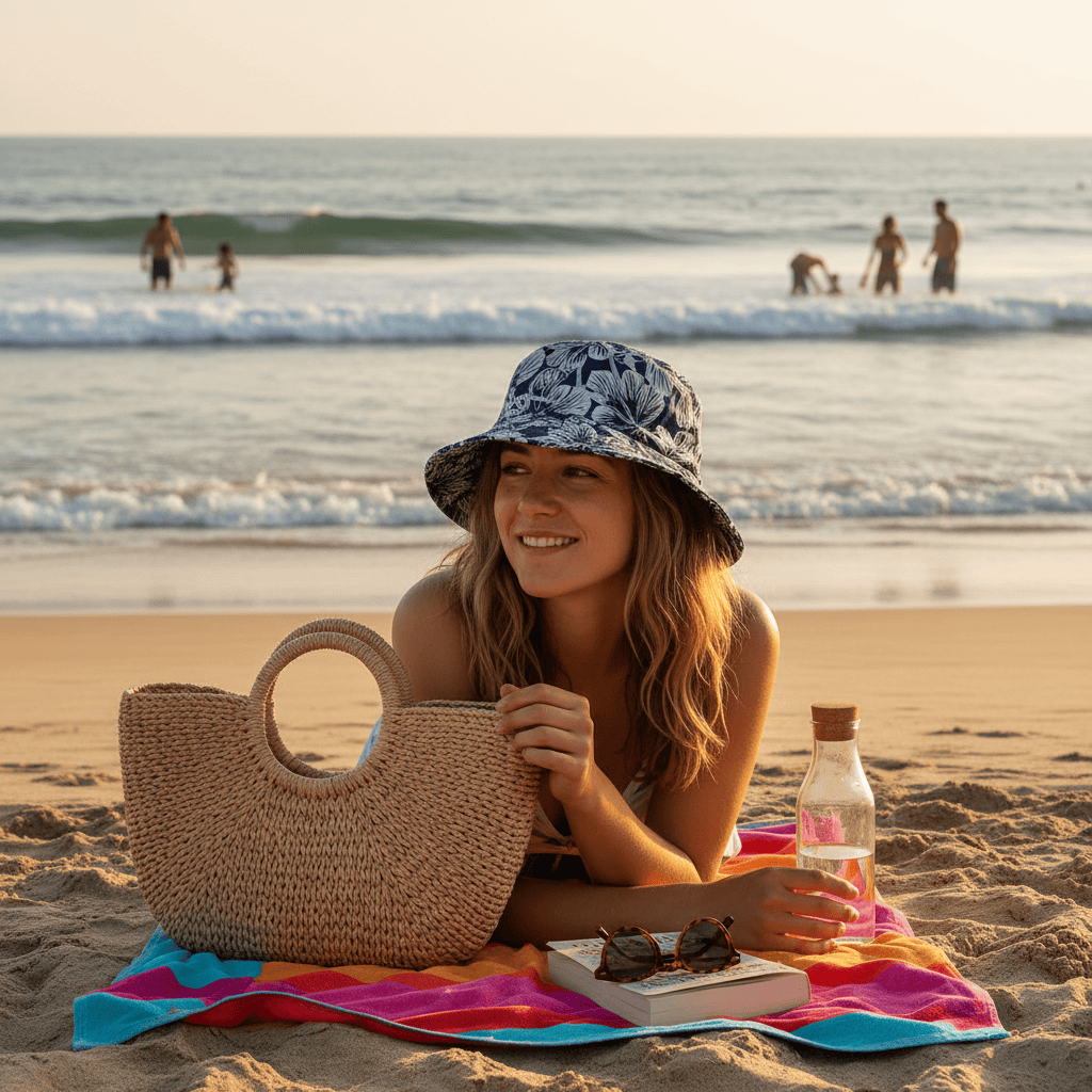 Bob réversible en coton ave un côté uni pour la sobriété et un côté à motifs pour l’envie du jour. Souple et léger, il se plie ou se roule pour se glisser facilement dans un sac de plage, un sac de voyage ou une valise.