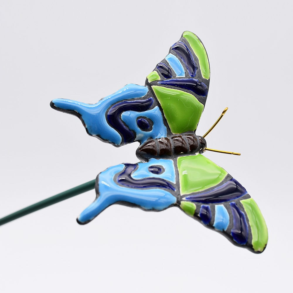 Très jolies fleurs ou papillons en céramique posés sur une tige flexible et destinées à être insérées dans un vase ou plantées en terre à l'extérieur.