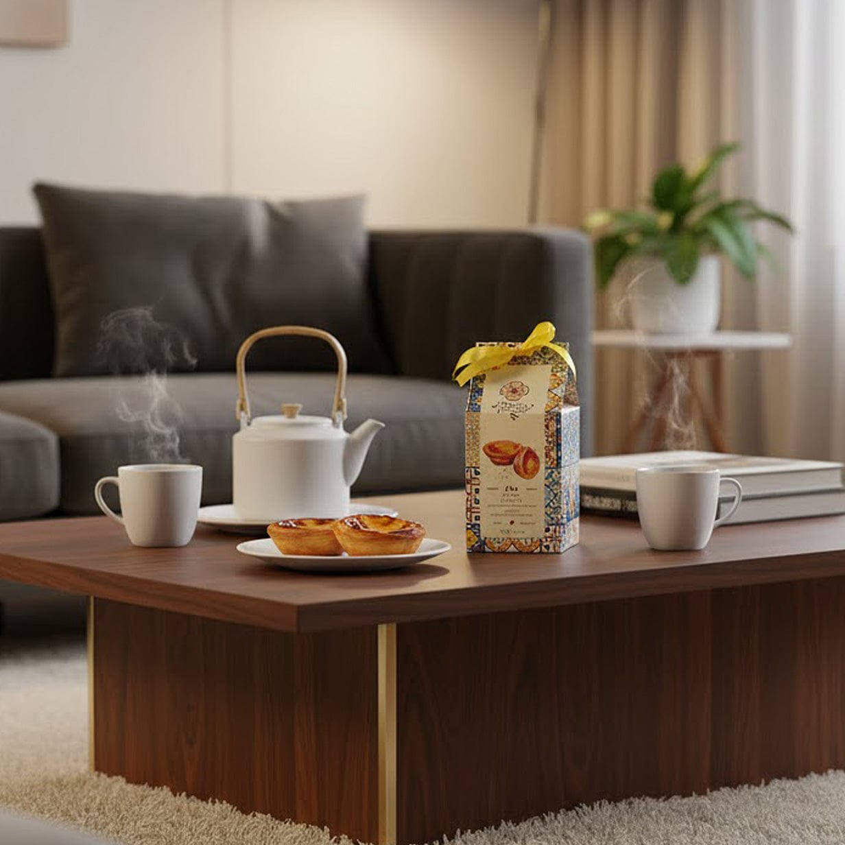 Un thé unique qui marie la force d’un thé noir corsé à la douceur sucrée des célèbres Pastéis de Nata, l’icône pâtissière du Portugal.