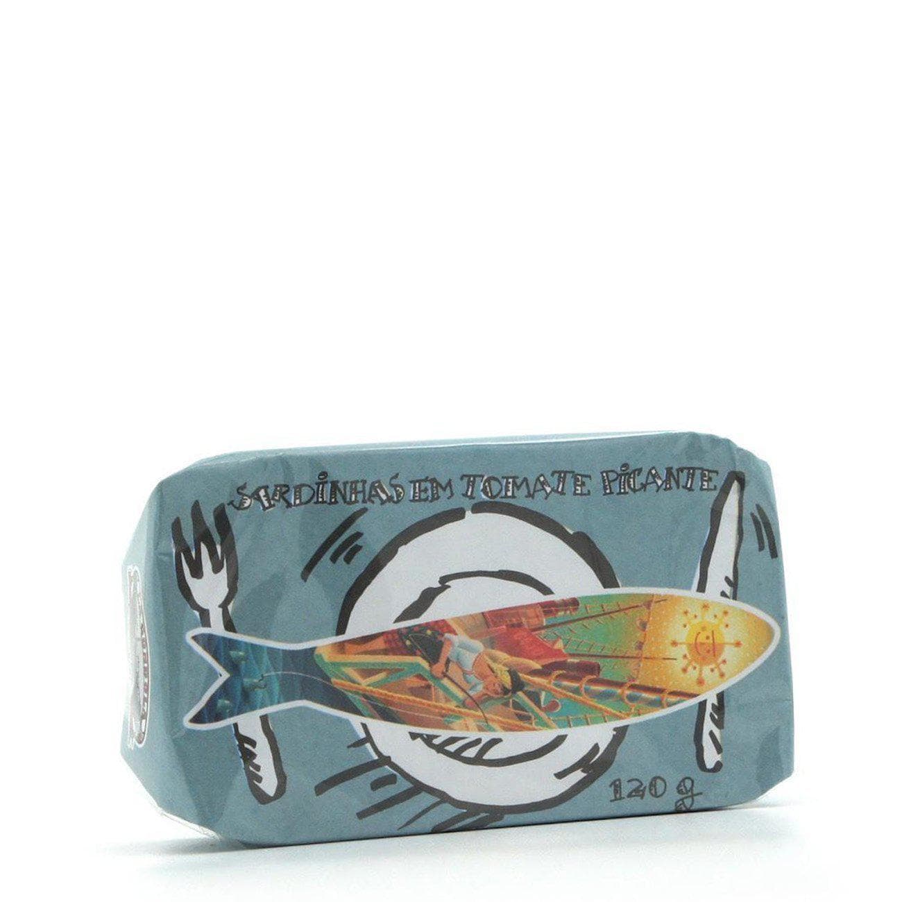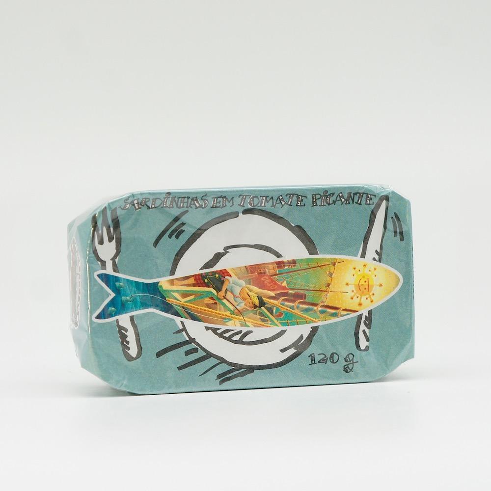 Sardines fraiches en provenance des cotes portugaises, immédiatement mises en conserve par La Gondola à Matosinhos au nord de Porto et conservées dans une huile d'olive agrémentée de tomates et de Piri-piri, le fameux condiment portugais à base de petits piments.