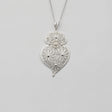 Magnifique pendentif, de grande taille (6 cm) tout en argent massif 925/1000e représentant un Coeur de Viana (Coração de Viana) et réalisé en filigrane. Ce pendentif se distingue par l'extraordinaire finesse de son filigrane. Cette finesse est obtenue grâce au travail 100% manuel d'un artisan orfèvre expert.