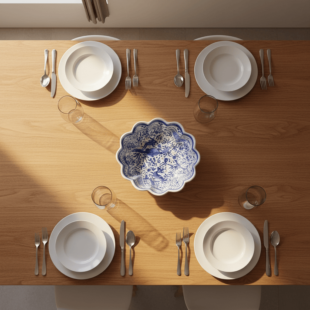 Chaque pièce est entièrement peinte à la main et signée par l’artisan qui l’a créée. Aucun dessin n’est reproduit à l’identique, aucun cache ou calque n'est utilisé. Les motifs évoluent librement d'une pièce à l’autre, selon l’inspiration du peintre, le geste, le moment.