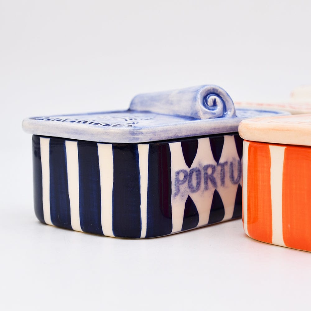 Jolie boite en céramique reproduisant l'incontournable boite de sardines portugaise réalisée dans une très belle céramique parfaitement lisse aux couleurs magnifiquement appliquées.