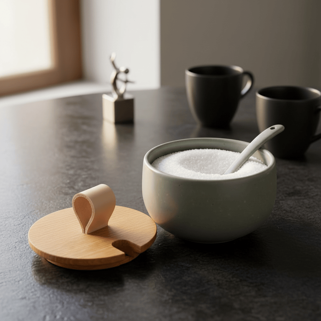 Pot à sucre en grès dans un style simple épuré et naturel s'intégrant parfaitement à toutes les cuisines quel que soit leur style.
