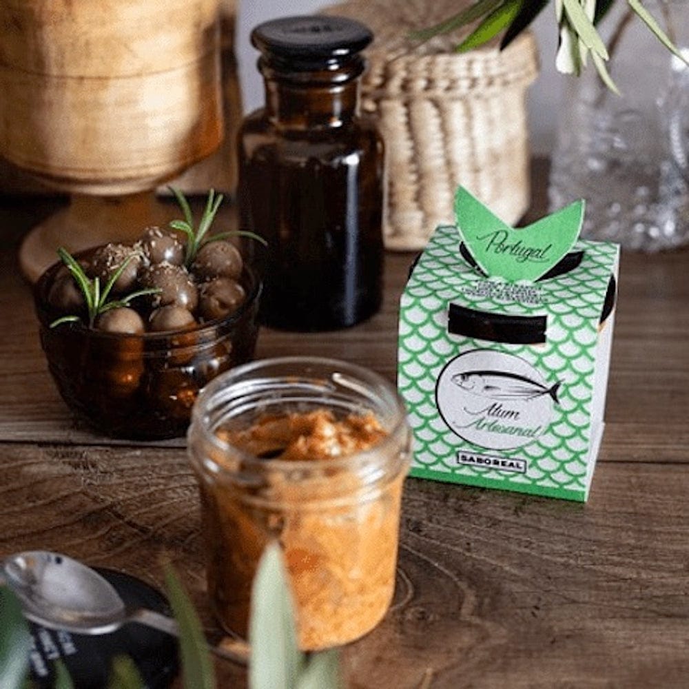 Verrine cuisinée à partir de thon des côtes de l'Algarve issus de la pêche "petits bateaux" et de légumes et épices locales.