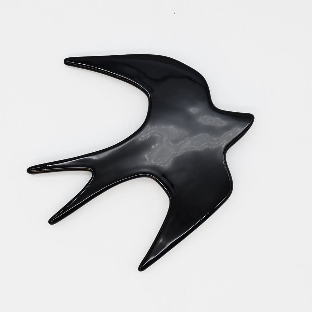 Laissez entrer un symbole de liberté et de bonheur dans votre intérieur ! Cette hirondelle en céramique noire peut se poser élégamment sur un meuble comme presse-papier grâce à son fond plat, ou s’accrocher au mur grâce à son trou ventral.