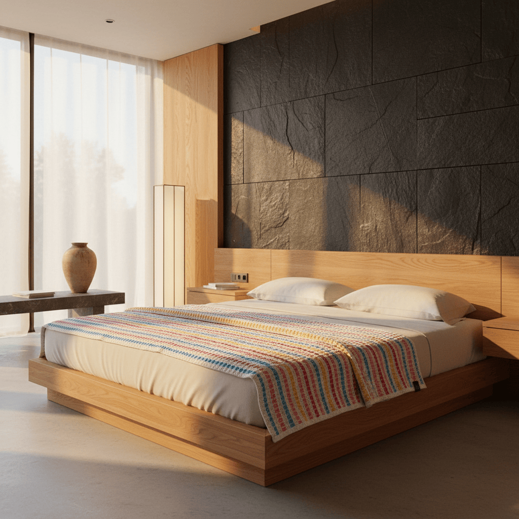 Son tissage traditionnel lui apporte une belle tenue, une vraie présence. C'est un couvre-lit ou un très grand plaid fait pour durer.