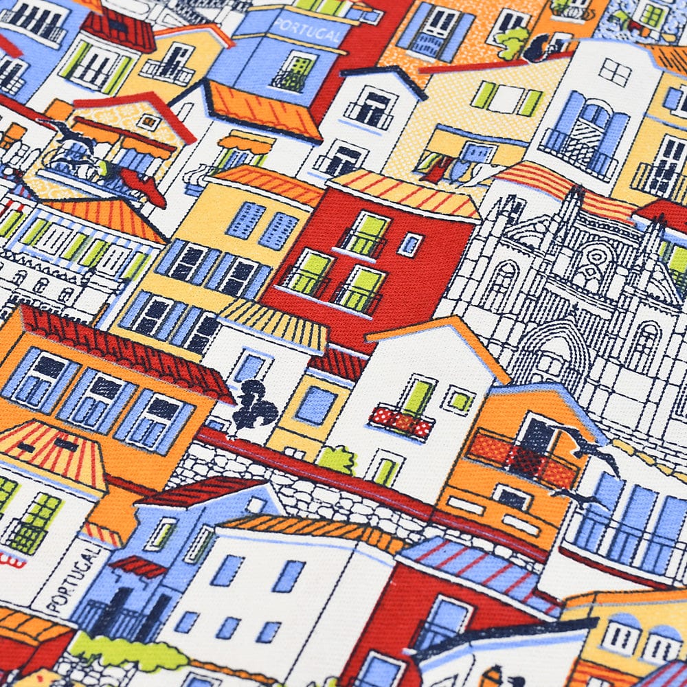 Très jolie nappe inspirée par les façades, portes et fenêtres colorées des villes de Lisbonne ou Porto.