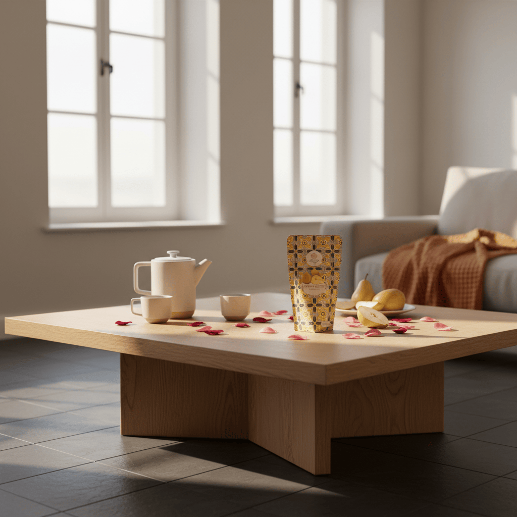Idéale en fin de journée ou en infusion froide, elle offre une pause légère et parfumée. L’hibiscus apporte une fraîcheur délicate tandis que la poire rôtie enveloppe l’ensemble d’une douceur gourmande.