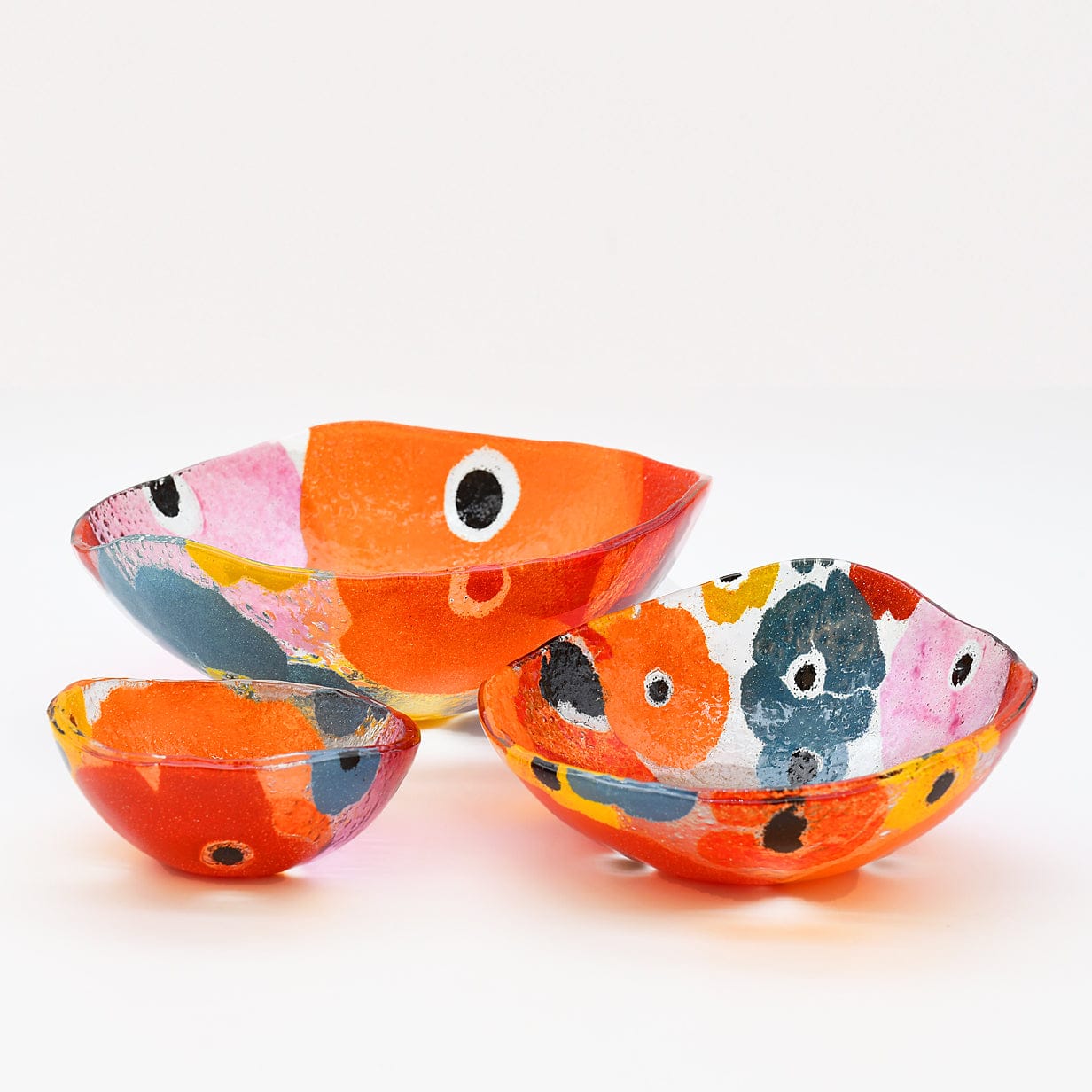 Chaque pièce est unique. Si les couleurs restent fidèles, les motifs se déplacent, se rencontrent autrement. Le geste artisanal ne se répète jamais à l’identique, c’est cette variation qui donne à ce saladier son caractère singulier.
