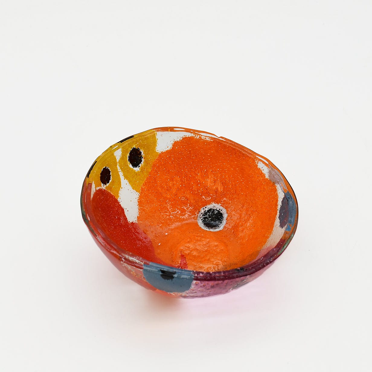 Ce petit saladier est entièrement façonné à la main à Marinha Grande, berceau du verre portugais, il naît de la fusion de plaques colorées travaillées à haute température.