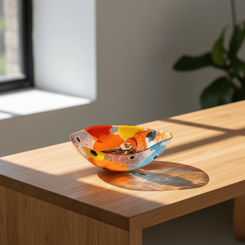 Chaque pièce est unique. Si les couleurs restent fidèles, les motifs se déplacent, se rencontrent autrement. Le geste artisanal ne se répète jamais à l’identique, c’est cette variation qui donne à ce saladier son caractère singulier.