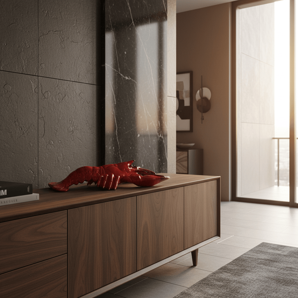 Ce homard en céramique, accroché au mur ou posé sur un meuble, apporte une touche graphique et vivante à l’espace. Un objet décoratif fort, mais facile à intégrer qui évoque la mer, les maisons portugaises, l’audace tranquille des intérieurs du Sud.