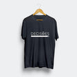 Tee-shirt bleu marine, de coupe classique, avec une illustration exclusive créée pour Luisa Paixão. L'illustration est composée du mot "Decisões" (Décisions en portugais).