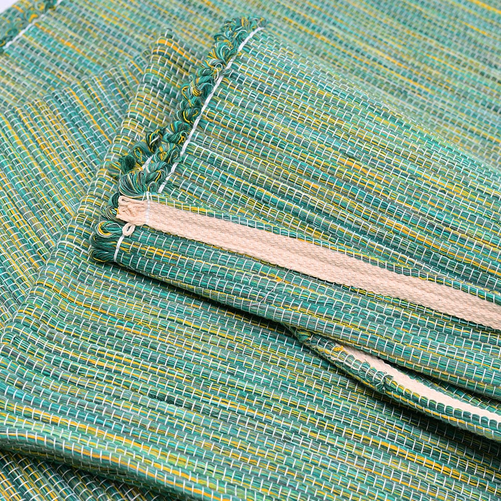 Ecologique, ce tapis utilise les fibres naturelles issues des surplus de tissage des usines textile du Nord du Portugal qui sont collectées localement et recyclées par les artisans du village.