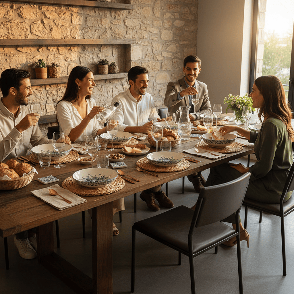 Son décor sous glaçure dévoile un blason portugais imaginaire. Un symbole fort, revisité avec simplicité, qui affirme une table conviviale et assumée.
