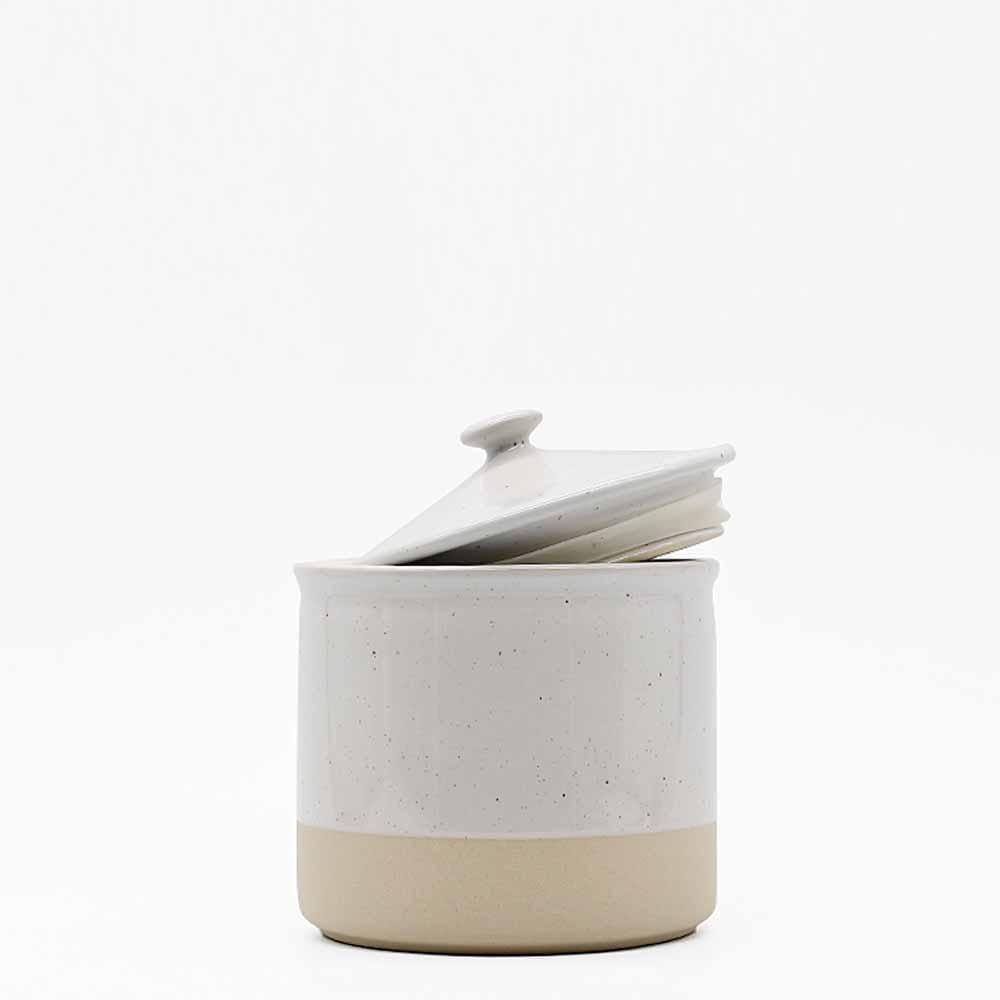 Très belle boite en grès munie d'un insert caoutchouté lui conférant son étanchéité. Cette boite est idéale pour conserver du sucre, de la farine, des fruits secs out tout autre condiment ou épice dans la cuisine.