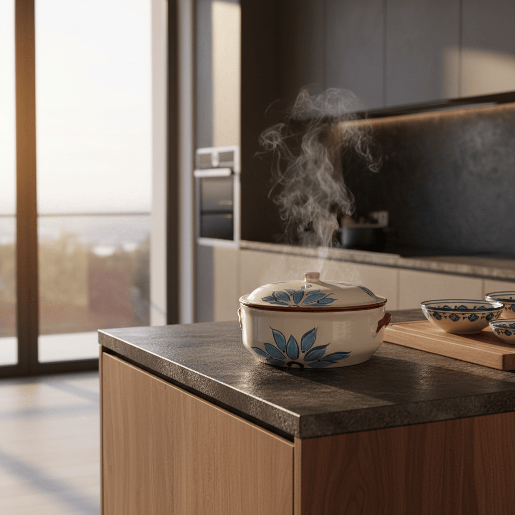 Cette marmite en terre cuite transforme chaque recette mijotée en un vrai plaisir : Rien n'accroche, les saveurs sont parfaitement préservées, la cuisson est uniforme que ce soit avec le gaz, le four ou même la braise.